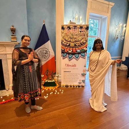 A heartfelt thank-you to GMC Docent Mary Reynolds for leading guests through an inspiring tour of Gracie Mansion’s rich history and heritage while celebrating light, culture, and community and thanks to all the amazing guests who came out to support the first Diwali Tour at Gracie Mansion. International Museum of The Saree has been an influencer pop up museum directly and indirectly helping many organizations and leaders to develop inclusive perspectives in programming of cultural heritage and includes honorary members such as, Pt. Anup Jalota, Dilip Sen Rahul Roy and diplomatic diaspora families