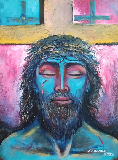 Sumana is from a religious family. Her mother Srimati Sandhya Nath, singer and father Guru Shri Sachin Nath, artist, would take their kids to Kalighat temple,Kolkata. These visits have left a spiritual impression in the mind. The love for the culture is evident in the paintings of Sumana. Her father was a senior artist from Pune. His works influenced Sumana and has manifested into her art forms. Longish and rhythmic figures are the core representation. Experimenting in various mediums.Dry pastels, acrylic, oil, Mix media, wood, clay, etc.
