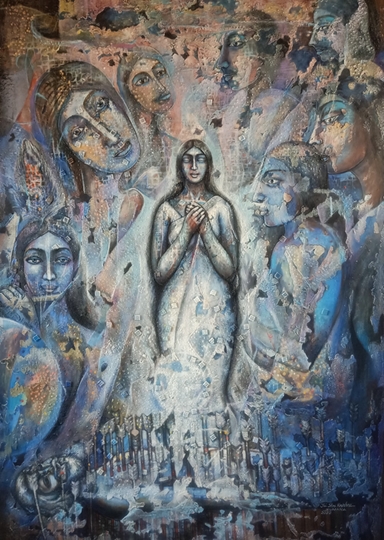 Sumana is from a religious family. Her mother Srimati Sandhya Nath, singer and father Guru Shri Sachin Nath, artist, would take their kids to Kalighat temple,Kolkata. These visits have left a spiritual impression in the mind. The love for the culture is evident in the paintings of Sumana. Her father was a senior artist from Pune. His works influenced Sumana and has manifested into her art forms. Longish and rhythmic figures are the core representation. Experimenting in various mediums.Dry pastels, acrylic, oil, Mix media, wood, clay, etc.