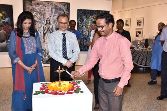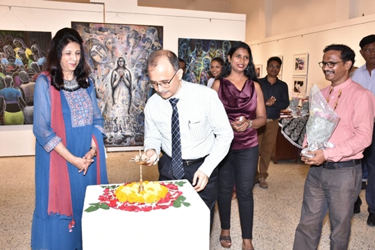 This show has been inaugurated on 7th June 2022 by Chief Guest Dr. Indu Shahani( Founding President & Chancellor Atlas SkillTech University, Mumbai), Guests of Honour Mr. Harish Bhat(Brand Custodian, Tata Sons), Ajoykaant Ruia (Chairman Allstate Group), Prof. Vishwanath Sabale(Director of Art & Dean, Sir J.J. School of Art), in the presence of Padmanabh Bendre(Eminent Artist), Mr. Nitin Jadia and many art Lover & art connoisseurs