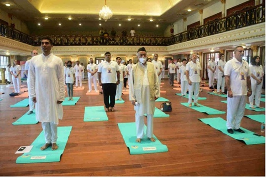 Ministry of External Affairs celebrates International Yoga Day With Maharashtra Governor Bhagat Singh Koshyari at Raj Bhawan in Mumbai