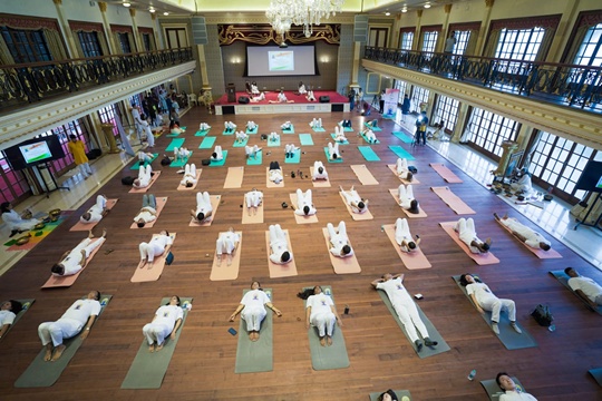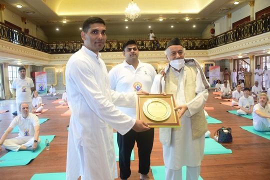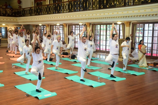 Even the Indian monsoons could not dampen the enthusiasm of Yoga enthusiasts as foreign diplomats, expatriate community, and foreign students from over 30 countries participated in celebrating the International Day of Yoga organised by Ministry of External Affairs’ Mumbai Office – Videsh Bhawan.